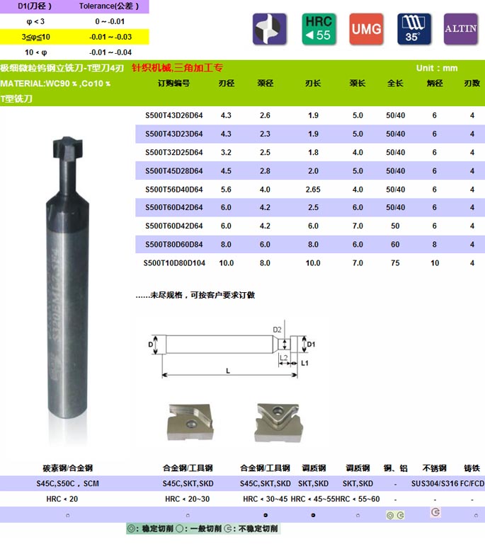 “极细微粒钨钢立铣刀-T型刀4刃”的详细信息