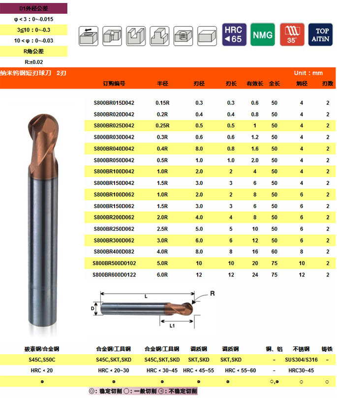 “纳米钨钢短刃球刀 2刃”的详细信息