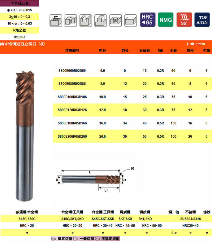 “纳米钨钢短刃立铣刀 6刃”的详细信息