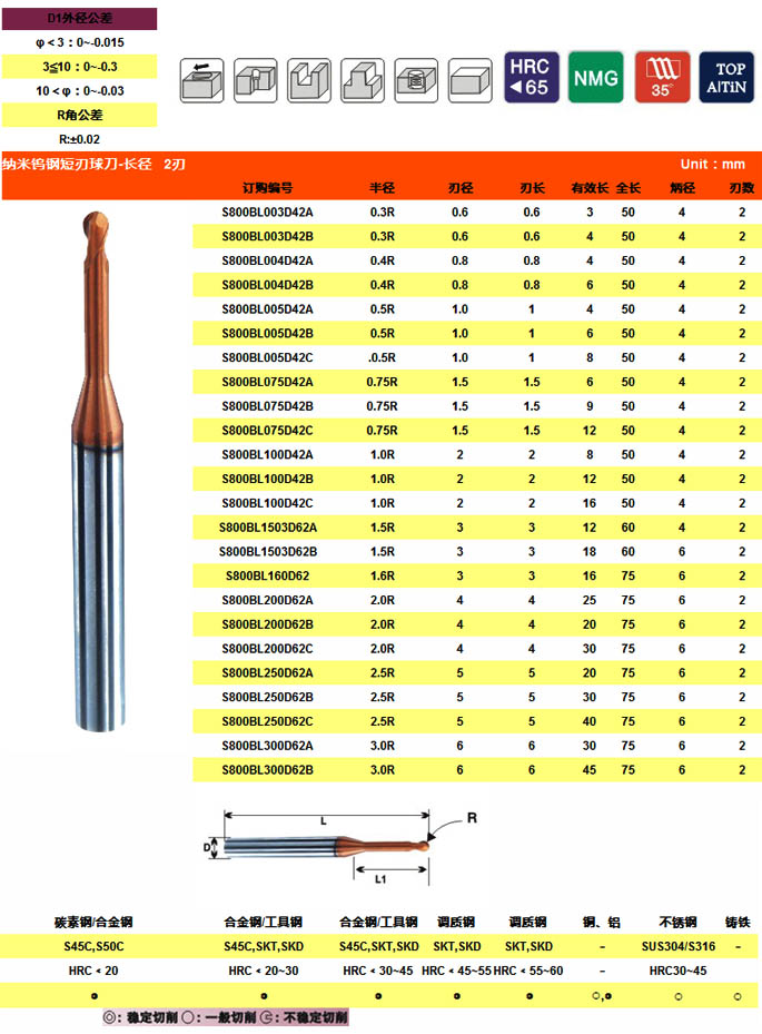 “纳米钨钢短刃球刀-长径 2刃”的详细信息