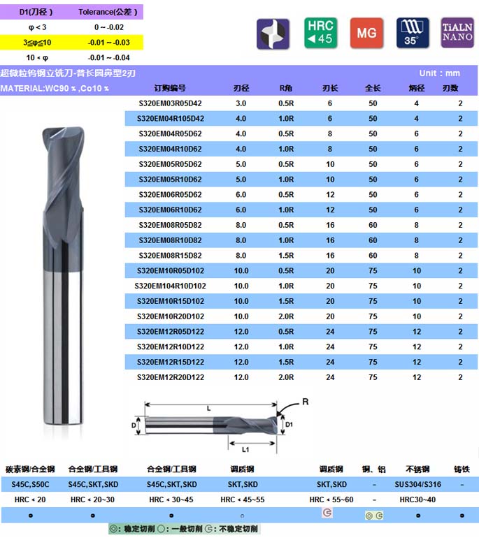 S-320超微粒钨钢立铣刀