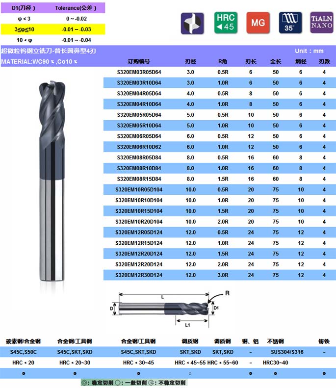 S-320超微粒钨钢立铣刀