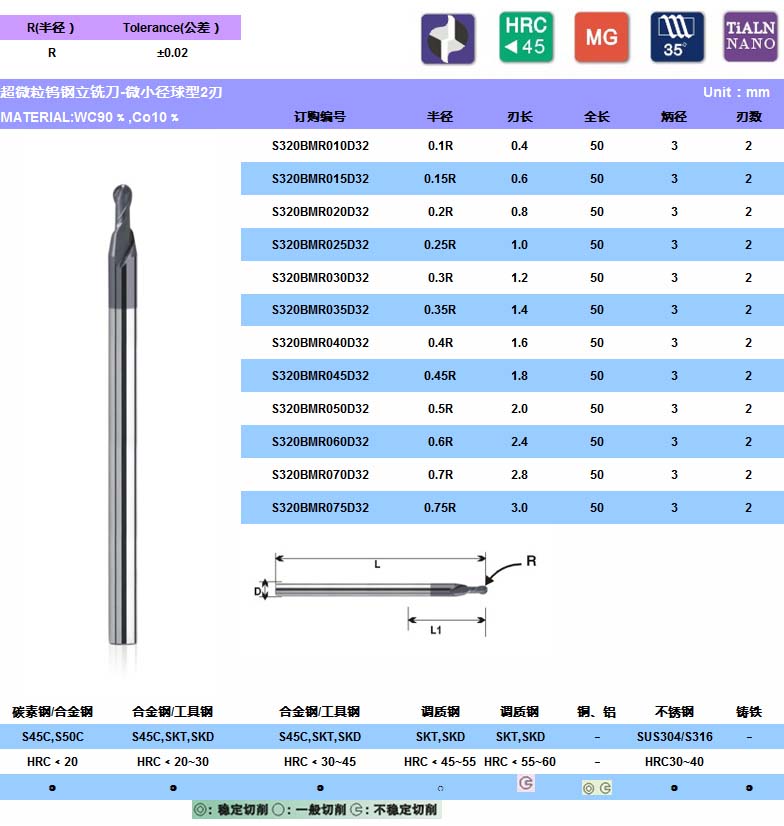 “超微粒钨钢立铣刀-微小径球型2刃”的详细信息