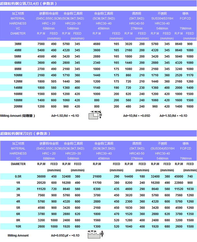 S-500极细微粒钨钢立铣刀