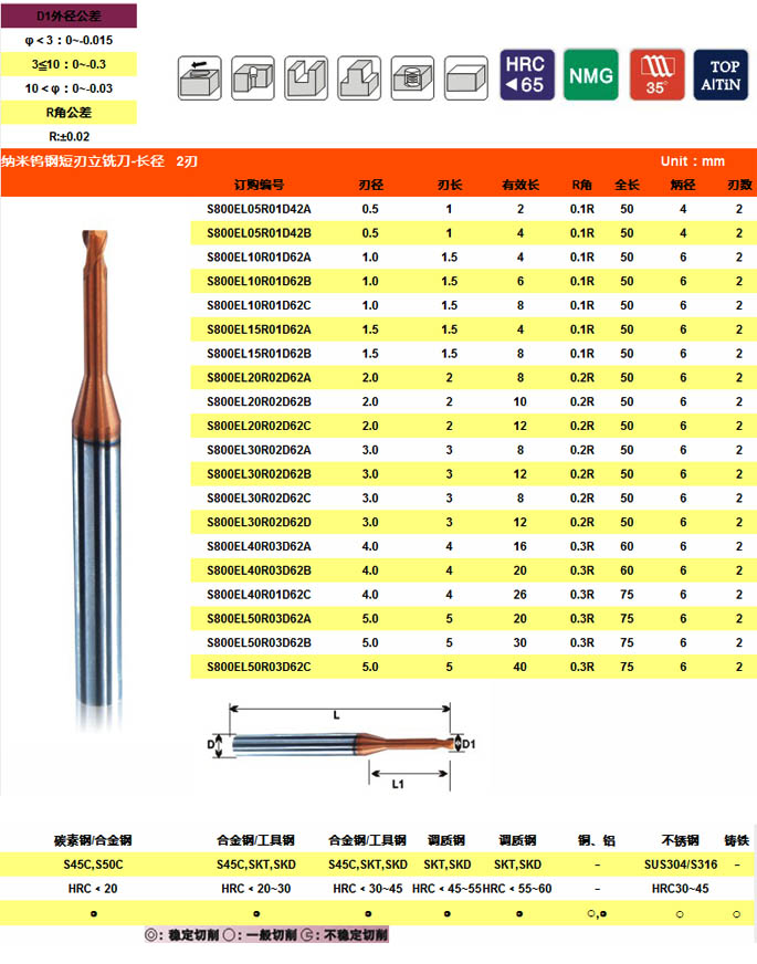 “纳米钨钢短刃立铣刀-长径 2刃”的详细信息